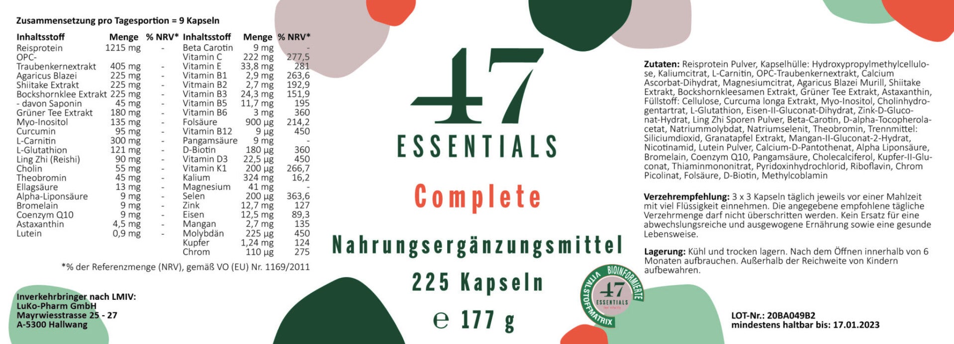 Complete enthält 43 aufeinander abgestimmte Vitalstoffe, die eine ideale Basisversorgung im Mikronährstoffbereich gewährleisten.